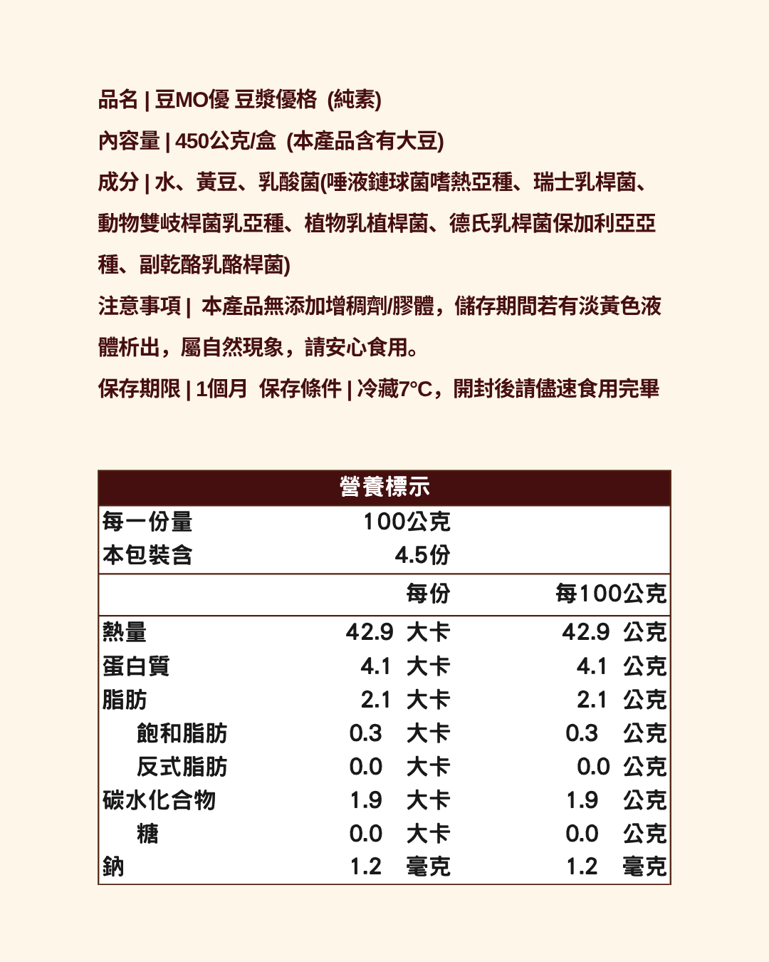1. 最懂豆漿的益生菌:我們嚴選最契合豆漿特性的菌種,連益生菌的培養過程都堅持純素友善。100% 植物性配方,無乳製品、無負擔,吃完優格後不會再急著早廁所囉